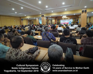 Dalam perayaan Hari Bhakti Ibu Pertiwi ke 14, Yayasan Anand Ashram mengelar Simposium Budaya Dengan Tema “Nilai- Nilai Luhur Warga Bumi Harapan bagi Masa Depan Manusia” pada tanggal 1 September 2018, dimana pada tanggal itu juga bertepatan dengan hari lahirnya Bapak Anand Krishna.